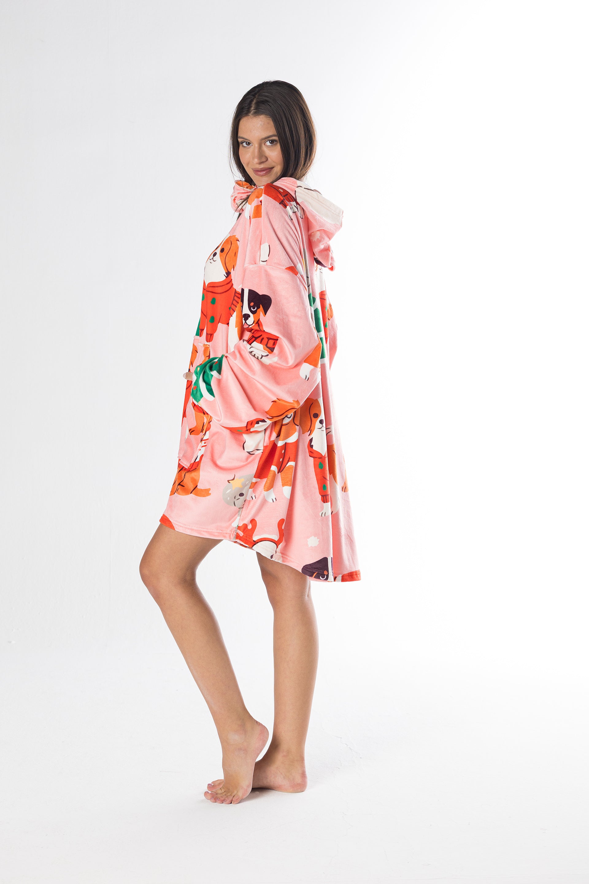 Cuddle up in style with our Dog Print Oversized Hoodie Blanket, designed to keep you cozy all season long. Made from luxurious velvet fabric with a soft fleece backing, it offers the perfect mix of warmth and comfort.