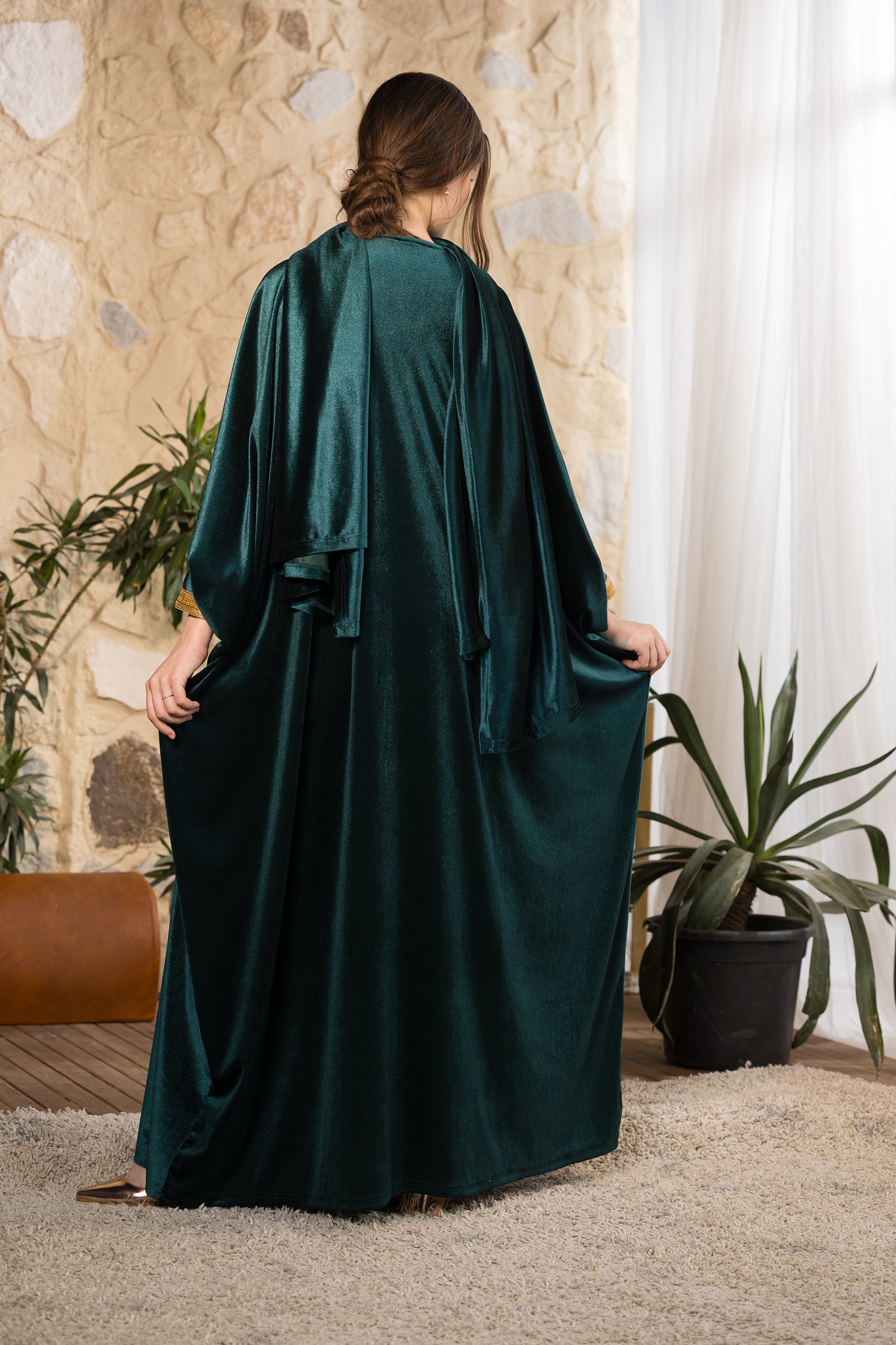 Emerald Serenity Velvet Abaya