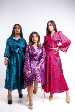 The product is customized to the model size: Bust 104 cm, Waist 85 cm and Hip 114 cm.